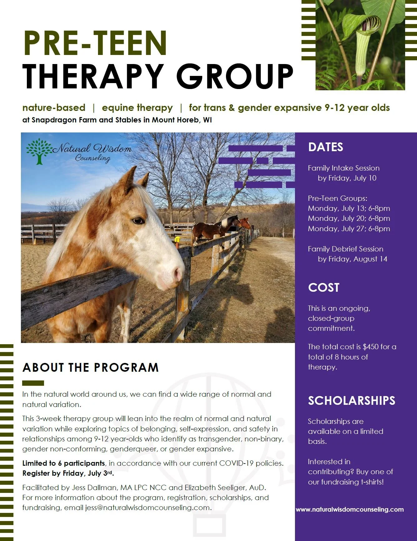For more information about the program, registration, scholarships, and fundraising, email jess@naturalwisdomcounseling.com.